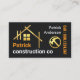 Uma cobrir escura apresenta um design de construção A-Frame dourado. Ele contém dois comentários de legenda que você pode mudar. No topo está seu nome prestigiado, um logotipo de martelo dourado que você pode usar com os detalhes de contato mantidos verticalmente à direita. No verso, no topo está o logotipo dourado seguido pelo seu nome prestigioso, os detalhes de contato e uma opção de slogan para divulgar sua empresa. Um cartão de excelente para uso dos empreiteiros de construção. #handyman #construcção #homerepair #construtor #construtor #construtor #remodelação #handymantools #interiordesign #prédios