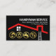 Um cobrir preto tem um telhado vermelho com um design de ferramentas de mão douradas. ; As ferramentas podem representar alguns dos serviços que você pode oferecer, por exemplo, a fita de medição de perfuração pode representar reparos em casa, remodelação, etc. No topo está o nome comercial "HANDYMAN SERVICE", que você pode alterar e seus detalhes de contato. No verso, em um cobrir branco, o logotipo da paisagem dourada que você pode usar está no topo. Seguem-se o nome da empresa e os respectivos contatos. Todas as letras estão em ouro falso. Um cartão de excelente para a construção, reparação de casas, negócios de mão de obra. #handyman #construcder #contratante #remodelador #empreiteiro #construtor #homerepair #telhado #handymantools #homerepaircontratante #zazzlemade