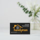 Um cobrir negro apresenta uma casa criativa feita da palavra "homem de mão". Por cima está seu nome prestigioso e uma legenda de slogan para divulgar seus serviços. ; Você pode mudar os comentários de legenda para o slogan para adequar-se às suas próprias necessidades publicitárias. Perto do canto inferior esquerdo estão os detalhes do contato. No verso, em um cobrir branco, no topo está um logotipo de martelo dourado que você pode usar. Seguem-se o seu nome prestigiado, os contatos e uma opção de slogan para divulgar seus serviços. Um design de excelente para o homem a ser usado.