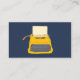 Este cartão de visita apresenta ilustrações bonitas de máquinas de escrever antigas com uma máquina de escrever magenta brilhante ou cor-de-rosa fuchsia contra um fundo azul marinho na frente e uma máquina de escrever amarela no fazer traseiro é perfeito para promover seu trabalho como escritor, autor, editor ou outro profissional de publicação.