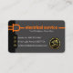 A black and grey layered cover features a creative power plug electrical supply line design. This supply line has your business name "electrical service" which you can change alongside your prestigious name. Just below this are the contact details (or captions) allocated in their respective gold electricity icon buttons. At the lower right corner is a gold "home letter-e circuit" logo you can use.