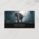 Cartões de visitas profissionais com uma fotografia de um elefante asiático com orelhas redondas em pé numa floresta se desfilando em direção ao espectador, com a luz solar descendo pela cobertura das árvores.