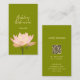 Cartão De Visita Elegant lotus flower boho avocado green QR code