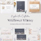 Um design cartão de visita moderno, elegante, com um fundo branco clássico e, no fundo, uma bela e elegante borda de flores silvestres de aquarelas de ambos os lados. A tipografia moderna e cinza pode ser facilmente personalizada com seu nome e detalhes comerciais.