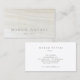 Design de cartão de visita, sofisticado, com fundo de mármore branco e bege veinado.