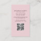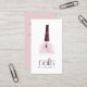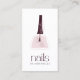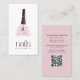 Elegante, Cartão de visita de um técnico de pregos esmagadores. Design apresenta uma garrafa de esmalte em cor-de-rosa-rosado, script de tipografia ''unhas' e seu nome na frente. Personalize ainda mais com os detalhes de contato e o código qr na parte traseira.