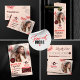 Este Modelo de cartão de negócios de beleza editável é perfeito para salões de cabelo, maquiadores, esteticistas e outros profissionais de beleza que buscam uma design feminina e elegante. O fundo cor-de-rosa suave e as delicadas ilustrações florais criam um aspecto sofisticado, enquanto o layout permite mostrar seu logotipo, foto e informações de contato. Principais recursos: texto editável, cores e imagens em formato pronto para Impressão, Ideal para design elegante e feminino para empresas de beleza e empreendedores