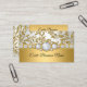 Cartão De Visita Elegante Clássico Dourado Damask Floral White