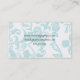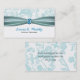 O cartão de visita à moda feito em uma água-marinha e branco, com um design do damasco, na parte superior e na parte inferior, da afiada dianteira, com gráficos bonitos de uma fita do cetim de água-marinha, com um topázio azul gosta da gema. A parte inferior do cartão é branca, com texto customizável. A parte traseira do cartão é coberta no aqua e na cor damasco branca. Personalize o texto, na parte dianteira e na parte traseira, para serir suas necessidades.