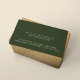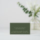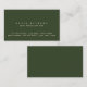 Cartão de contato verde-escuro simples e clássico, com campos para nome, profissão e endereço, todos impressos na frente... seguindo a máxima do conceito visual "menos é mais", para fazer uma primeira impressão de excelente.
