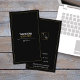Esse cartão de visita único e moderno apresenta um simples design em preto, branco e ouro, com nome, cargo e contatos. É excelente para todo o tipo de negócios. Facilmente personalizável.