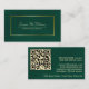 Cartão De Visita Elegante Emerald Green e Dourado código de QR prof