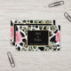 Impressão em zebra chica com cartão de visita de salão floral cor-de-rosa e roxo, com elegante quadro preto e dourado.