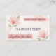 Design de cartão de visita horizontal, de dois lados, elegante e profissional, para cabeleireiro ou cabeleireiro. O lado frontal destaca seu nome e profissão, enquanto o verso fornece detalhes sobre salões, informações de contato e mídias sociais. Perfeito para cabeleireiros, salões e profissionais de beleza que querem uma apresentação na moda e moderna.
