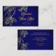 Cartão De Visita Elegante Marinho Clássico Folha Dourada Azul