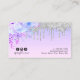 Esta bela lasca e design de cartão de visita de brocas apresenta falso brilho prateado, flores roxas e azuis, pestanas e fontes elegantes de caligrafia.