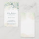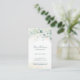 Cartão de visita vertical elegante, com uma borda superior de folhas de eucalipto e verde, com uma ponta de azul, sobre uma lavagem a aquarela pastel. Seu nome está em um script verde escuro e suas informações de contato estão em uma fonte serif. Este simples e rústico design é excelente para um jardineiro ou profissional paisagista.