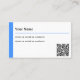 Cartão de visita profissional simples e elegante com código QR. Você pode vincular seu LinkedIn ou outra rede profissional como um código de varredura fácil. Coloque qualquer texto em dois campos suplementares ou deixe-os vazios - o que melhor atende às suas necessidades.