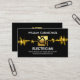 No verso, o logótipo dourado familiar para o seu uso está no topo, seguido do seu nome de prestígio, dos seus dados de contato e de uma opção de slogan para anunciar os seus serviços.
