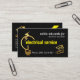 Um belo cobrir de granito preto apresenta um design de lâmpada dourada que tem o nome de sua empresa de "serviço elétrico". No topo está o seu nome prestigioso junto ao cargo com o contato telefônico perto da base. No verso, os detalhes da placa estão sobre o lado esquerdo com um logotipo da letra-e dourada que você pode usar no topo. Depois disso vem seu nome prestigiado, os detalhes de contato e uma legenda de slogan que você pode mudar. À direita está um raio amarelo realçando os detalhes da sua placa. Um cartão criativo de excelente para os eletricistas usarem.