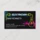 A eletrização de ondas azuis e vermelhas flui pela face da placa, fornecendo corrente aos cabos da tomada de alimentação e da lâmpada. Seu título de trabalho "eletricista" no topo pode ser mudado para atender às necessidades de sua empresa. Logo abaixo deste é o seu nome prestigiado junto aos detalhes do contato perto da base.