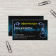 Uma onda azul eletrizante flui através da face da placa fornecendo corrente aos cabos da tomada de alimentação e da lâmpada. Seu título de trabalho "eletricista" no topo pode ser mudado para atender às necessidades de sua empresa. Logo abaixo deste é o seu nome prestigiado junto aos detalhes do contato perto da base.