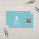 Um cartão de visita profissional para uma empresa de limpeza ou limpeza. A frente da placa apresenta um gráfico de spray, nome de sua empresa e um código QR. A parte traseira do cartão tem o seu nome, título, detalhes de contato e espaço para um slogan ou descrição de serviços. Um design moderno, elegante e minimalista num fundo azul aqua. Crie seu cartão personalizado hoje mesmo!