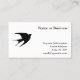 Crie suas próprias cartões de visitas com uma silhueta de engolir voadora para uma imagem de logotipo. A área de informações de contato nesses cartões de crédito é definida em quatro linhas. Se precisar de mais ou menos espaço, escolha o recurso "personalizá-lo" para mover a seção. Se um cartão de visita de dois lados for necessário para obter mais informações, a fonte correspondente será "Garamond Bold". Se você quiser alterar as cores do fundo ou da fonte, escolha o botão "personalizá-lo".