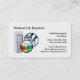 Cartões de visitas de suprimento de equipamentos médicos de laboratório projetados com um congelador de laboratório, tubos de teste e vidro de laboratório.