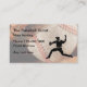 Cartões de visitas temáticos do basebol com imagem de um jarro na ação e imagem de fundo levemente impressa de uma luva e de uma bola de basebol. Projetado para um escuteiro de talento, a liga de basebol, ou os esportes compram.