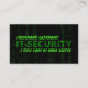 O cartão de visita favorito de segurança de TI para cibercrime e cibersegurança profissionais com elegante fundo em matriz verde e preta mostrando o texto "Segurança de TI" e a mensagem segura "Eu cuido de sua segurança" para especialistas reais em tecnologia de informação. Elegante Modelo de cartão de negócios Premium Personalizado para você e seus serviços na aura digital de cibercrime, proteção de dados, segurança da Internet, proteção de identidade e análise de fraude e sistemas de firewall. Mostre sua experiência em serviços de tecnologia da informação com esses cartões de visitas de segurança da TI, se você for um especialista profissional em cibersegurança de TI. Dê uma olhada neste Modelo de cartão de negócios Premium totalmente personalizável e personalize texto, estilo, cores, tamanhos para ajustado de suas necessidades. Se você tem uma pergunta design ou gostaria de ver este design em outro produto, por favor, sinta-se à vontade para me contactar!