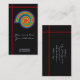 Espiral colorida e linhas vermelhas cruzadas, cartão de visita preto. Personalize com seu texto.