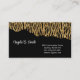 Este cartão de visita é apresentado em um design de arte rasgada com estampa de animal em brilho falso nas cores preto e dourado.