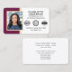 Faça uma impressão profissional com este cartão de visita clássico. Personalize-o facilmente com sua foto, nome, cargo, endereço e detalhes de contato. O espaço é fornecido para o seu logotipo e dois logotipos de acreditação. Todos os textos e imagens podem ser personalizados ou excluídos para atender às necessidades de sua empresa. Cores impressas: ameixa profunda, ouro, preto e branco.