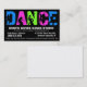 Este é um cartão de visita corajoso para professores da dança. Design de alto impacto com cores corajosas e brilhantes que ESTALAM realmente no fundo preto. Este cartão à moda moderno é certo fazer uma impressão durável! O gráfico urbano legal do grunge com DANÇA em maiúsculo em azul, em roxo-cor-de-rosa e o verde limão, com imagens do estilo da silhueta dos dançarinos que executam a vária dança move-se dentro das letras. Diversas áreas de texto personalizadas no branco torrado no preto para sua informações de contacto do estúdio, tipos de cursos da dança ou denominam idades da base do cliente oferecido e suas potencial.