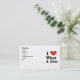 Quebre o gelo com um novo cliente potencial com este cartão de visita. É nas cores de preto e vermelho com um grande coração vermelho. a carta diz "Eu amo o que eu faço". O que leva a maioria das pessoas a perguntar-te, O que é que fazes?