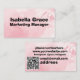 Esse cartão de visita rosa e branco personalizável oferece um design único e vibrante, perfeito para fazer uma impressão memorável. A frente apresenta seu nome e cargo em tipografia elegante e moderna, com um toque lúdico, mas profissional, de rosa contra o fundo branco limpo. A parte traseira é dedicada às informações essenciais de contato — e-mail, número de telefone, site, identificador do Instagram e endereço — normalmente organizadas em um layout claro e legível. Um código QR também é incluído para acesso rápido ao seu perfil ou portfólio digital. Essa placa dupla combina estilo e funcionalidade, oferecendo uma maneira nova e personalizada de apresentar seus detalhes profissionais.