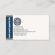 No verso, o nome da empresa é invertido na parede esquerda em uma coluna de distribuição azul. Ao lado dele está o logotipo dourado seguido do seu nome prestigiado, dos seus detalhes de contato e de outra opção de slogan para anunciar seus serviços.