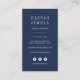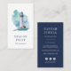 Cartões de visitas verticais elegantes para sua empresa costeira apresentam uma ilustração de farol de cor d'água em blues e verdes náuticos, com seu nome e/ou nome comercial embaixo. Personalize o reverso com suas informações de contato, incluindo três ícones de mídia social e um campo modelo para seu nome de usuário de mídia social, em branco a azul marinho.