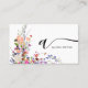 Apresentando um elegante e profissional cartão de visita preto e branco para cabelos e maquiadores. A frente apresenta um impressionante design floral pintado à mão com uma mistura de flores delicadas, incluindo rosas, lavandas e flores silvestres em tons vibrantes de rosa, roxo e branco. Este intrincado arranjo botânico é emparelhado com uma inicial corajosa e o nome em uma fonte moderna editável. O verso inclui um modelo de foto, detalhes essenciais de contato, ícones de mídia social e um código QR para fácil acesso ao seu portfólio.