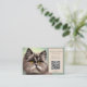 Apresentando esse sofisticado cartão de visita com um design gráfico detalhado de um gato elegante, exuberando graça e charme. Aumente sua presença profissional com um toque de finesse felino e a conveniência de ponta de um código QR, conectando seus clientes sem problemas ao site da sua empresa.