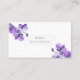 Um bonito cartão de visita perfeito para um negócio de spa ou beleza, com duas ramificações violetas de orquídeas de aquarelas sobre fundo branco, com detalhes em sofisticadas cinzas escuras. O verso está em cinzas escuras sólidas, com texto branco.