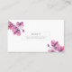 Um bonito cartão de visita perfeito para um negócio de spa ou beleza, com duas ramificações de orquídeas de ameixa em fundo branco, com detalhes em sofisticadas cinzas escuras. O verso está em cinzas escuras sólidas, com texto branco.