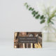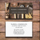 Um cartão de visita profissional que você pode personalizar para um homem de mão, carpinteiro ou trabalhador de madeira, com ferramentas bem vestidas e usadas do comércio. A fonte tem uma sensação de madeira biselada com suas bordas afiadas. Um fundo de efeito de madeiras rústicas. A parte traseira da placa tem um tipo de vibração de corte preto em uma parte traseira branca.