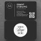 Cartão de visita, tamanho: Quadrado 6,4 x 6,4 cm, papel: Fosco Padrão, bordas: Quadrado