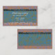 O design gráfico original neste Cartão de visita foi criado a partir de uma digitalização de uma fita de filme de 35 mm. As cores de fundo são azuis e rajadas do céu. As cores da fita são azuis aqua e castanhos de ouro. O topo da fita, onde se dobra, é preto com realces azuis aqua. O texto é branco, para personalizar com seu próprio título e informações, e há espaço no verso para mais.