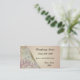 Uma cartão de visita elegante e feminina. Papel de parede antigo no canto esquerdo contra um fundo de gradiente rosa suave. Uma fita de cetim completa a design.
