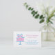 Um design elegante e elegante de um bolo rosa com fita azul em um suporte de bolo. Este cartão de visita elegante é excelente para qualquer pessoa que opere bolos, pastelarias e padarias. Personalize facilmente com seus detalhes comerciais.