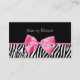 Espalhe a palavra sobre seu negócio novo impressionante com estes cartões de visitas preto e branco bonitos e na moda do impressão da zebra com uma fita cor-de-rosa feminino amarrada em um arco. Imagem impressa do plano, fita nao real.