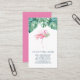 Comercialize seu pequeno negócio tropical ou do lado da praia com este cartão de visita que apresenta minha arte original rosa de aquarela flamingo cercada por uma luxuosa carpa de folhas de palma da monstera em tons de branco e verde rosa. Adicione sua personalização com várias linhas de texto personalizado e detalhes profissionais na frente em um tipo moderno azul marinho. O design de aquarela único é transportado para o fundo em um padrão de verde. Pode também ser usado para planejadores profissionais de eventos, cabeleireiros ou qualquer negócio tropical. Para ver mais designs, visite www.zazzle.com/dotellabelle